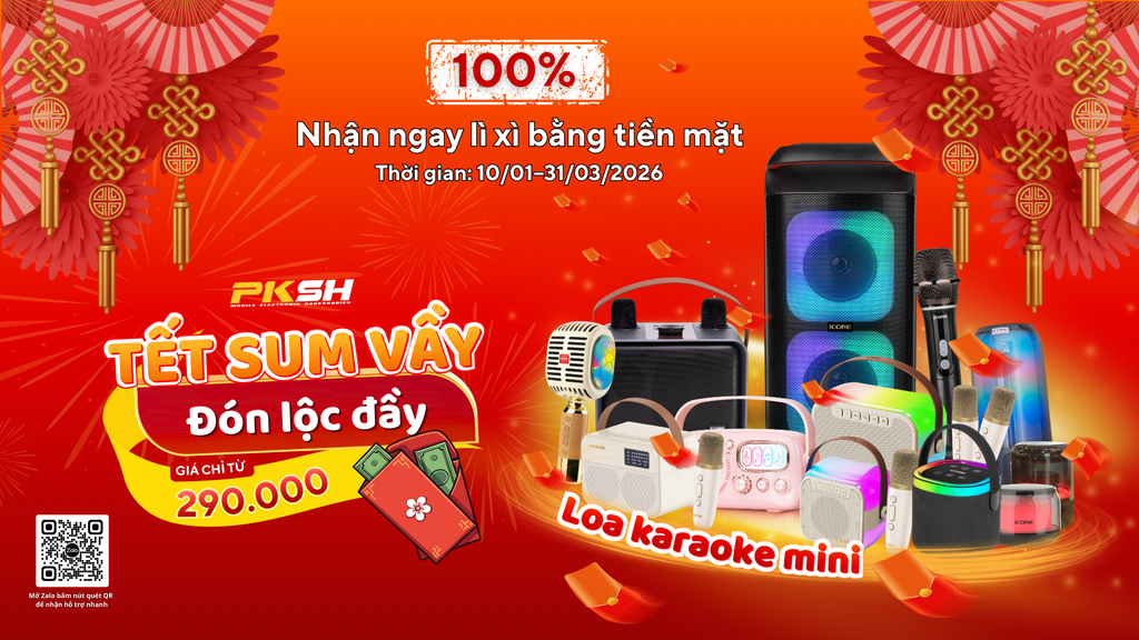 Tết là dịp sum họp gia đình và tận hưởng những khoảnh khắc vui vẻ bên nhau. Với mong muốn góp phần mang đến không khí Tết trọn vẹn qua từng thanh âm, Công ty Cổ phần Phụ Kiện Số Hóa (PKSH) gửi tặng ưu đãi "Lộc Xuân" đặc biệt dành riêng cho quý khách hàng: