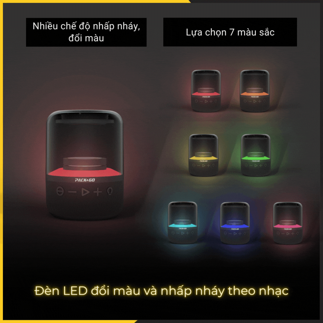 Loa Bluetooth PACK&GO LBS-02 Đèn LED 7 Màu, Âm Bass Mạnh, Giá Tốt